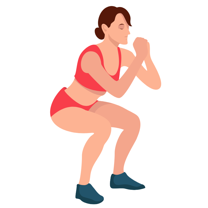 따라서 위 동작이 익숙해질 때까지는 하프 스쿼트로 시작하셔서 점진적으로 고관절 및 무릎 관절 가동 범위를 늘려가시는 것이 좋습니다.