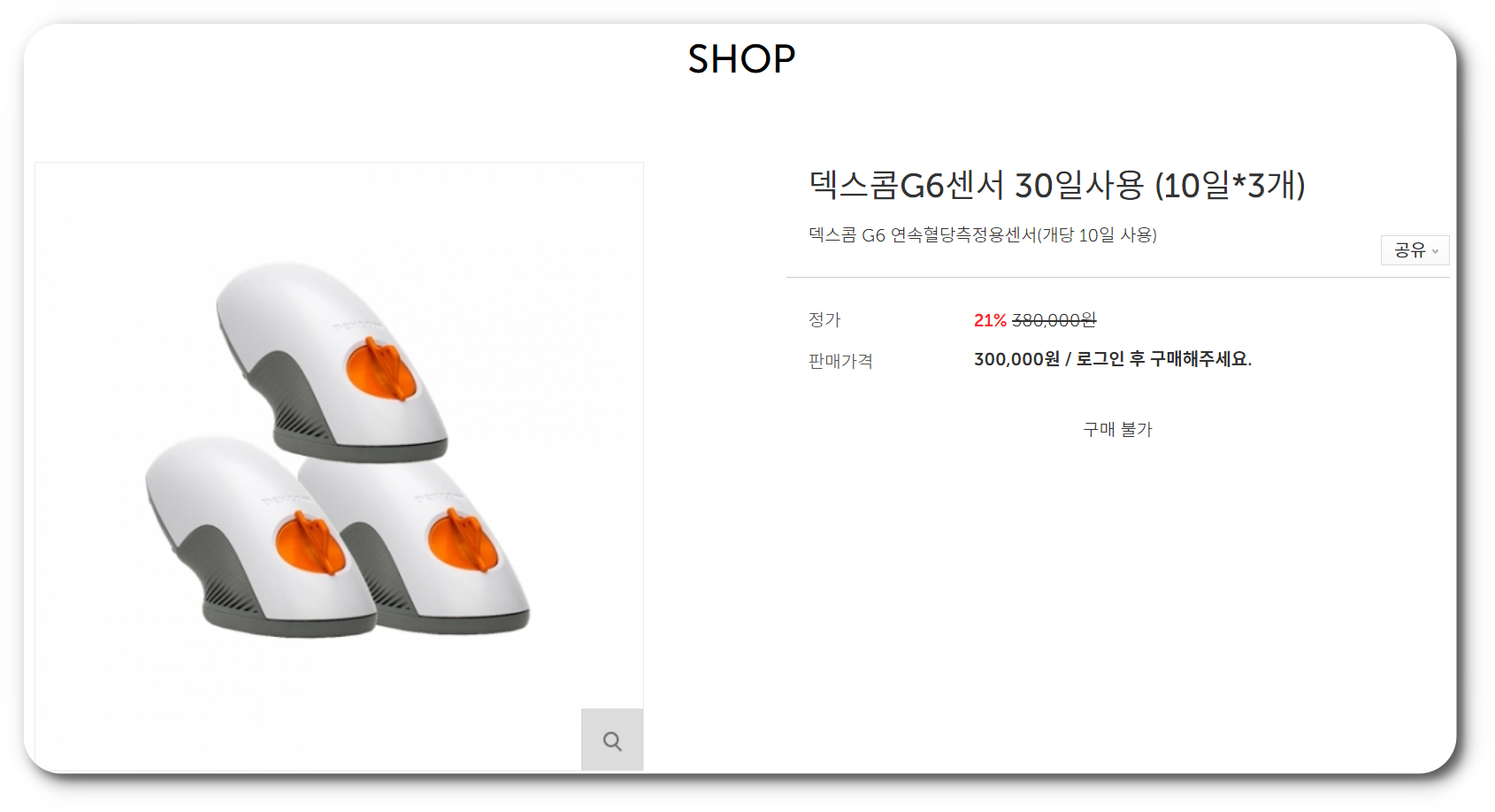 - 덱스콤 G6센서 30일 (10 x 3) : 300,000원