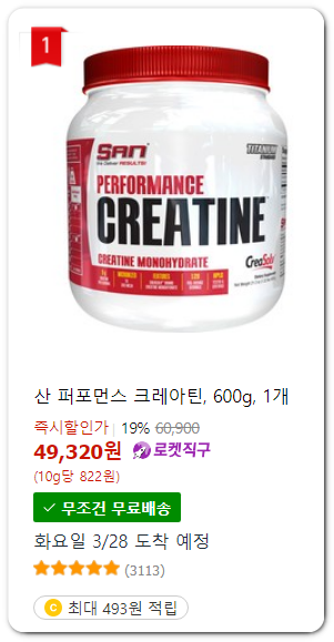 위 내용은 산 퍼포먼스 크레아틴의 Best 후기글인데, 글이 되게 리얼하고 재밌어서 가지고 와봤습니다. 산 퍼포먼스 크레아틴을 최저가로 구매하시려면 아래 링크를 통해 주문하시면 됩니다. (제품 용기도 최신형이며, 타 사이트와 비교해도 쿠팡에서 직구로 판매하는 가격이 가장 저렴합니다.)